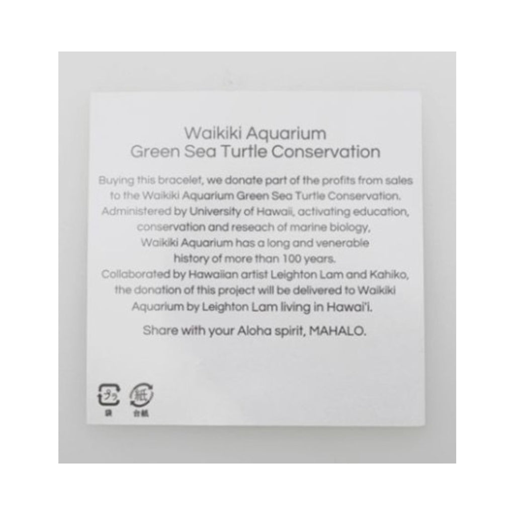 売り上げの一部を寄付し、HAWAIIのホヌ(海亀)の保全活動に役立てられます
