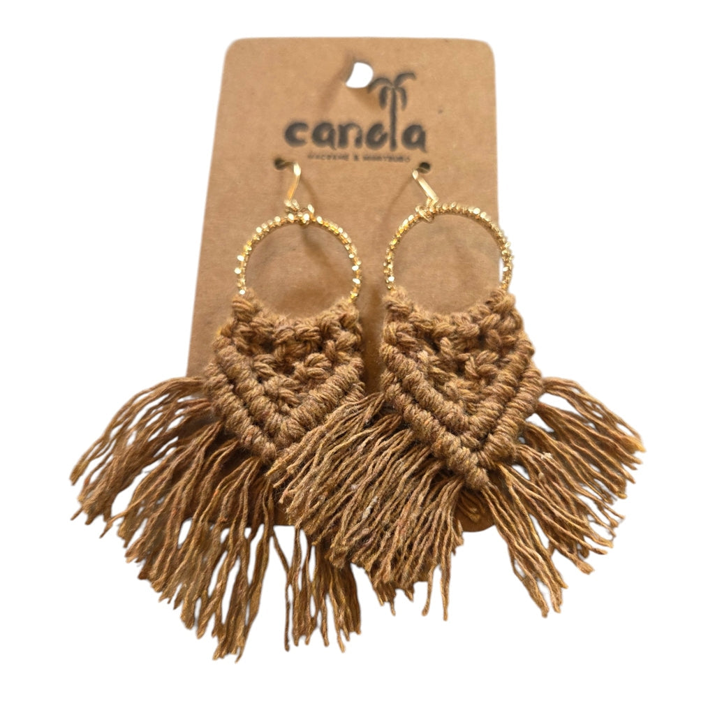 マクラメ ピアス ゴールドリング Brown