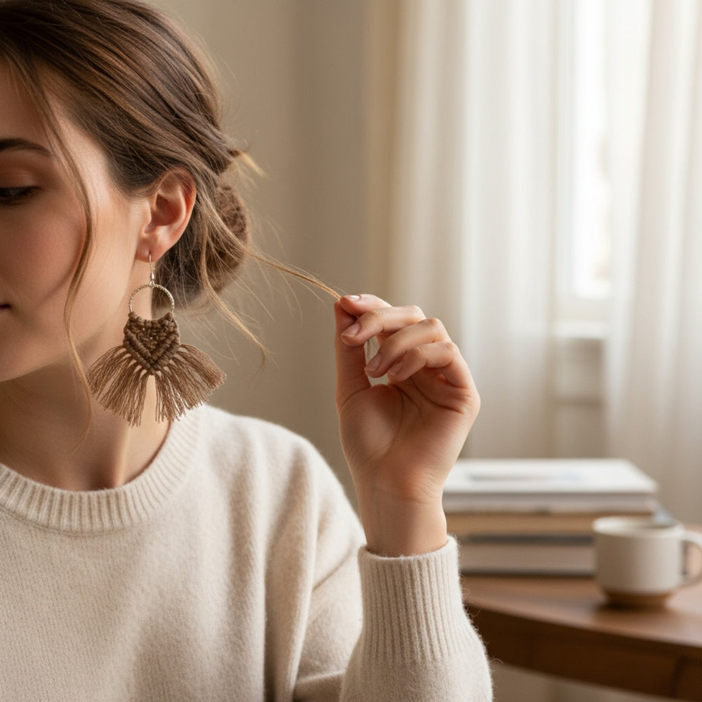 マクラメ編みのカラフルなフリンジピアス