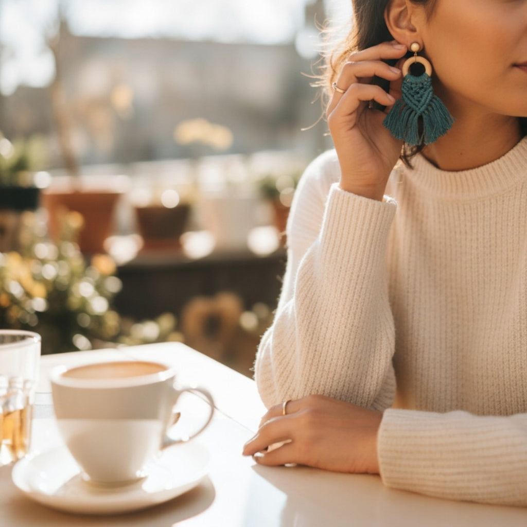 マクラメ編みのカラフルなフリンジピアス