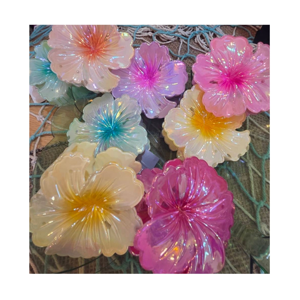 フラワーヘアクリップ ハイビスカス カラーおまかせアソート3個セット