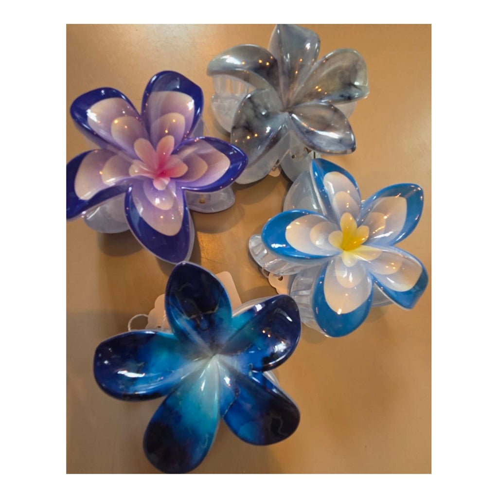 フラワーヘアクリップ プルメリア ブルー系おまかせアソート3個セット