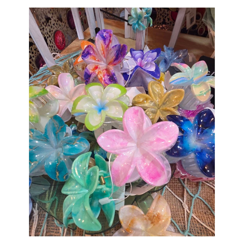 フラワーヘアクリップ プルメリア グリーン系おまかせアソート3個セット
